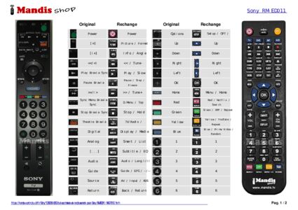 Cette télécommande remplace entièrement votre RM-ED011 (148077811) et offre toutes les fonctions de l'originale.