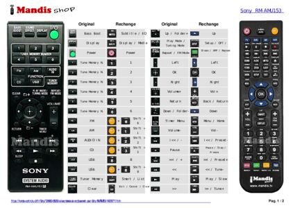 Cette télécommande remplace la plupart des fonctions de votre RM-AMU153 (149016711). Il ne s'agit pas d'une télécommande universelle, mais d'une copie avec la plupart des touches et des fonctions de votre télécommande d'origine.
