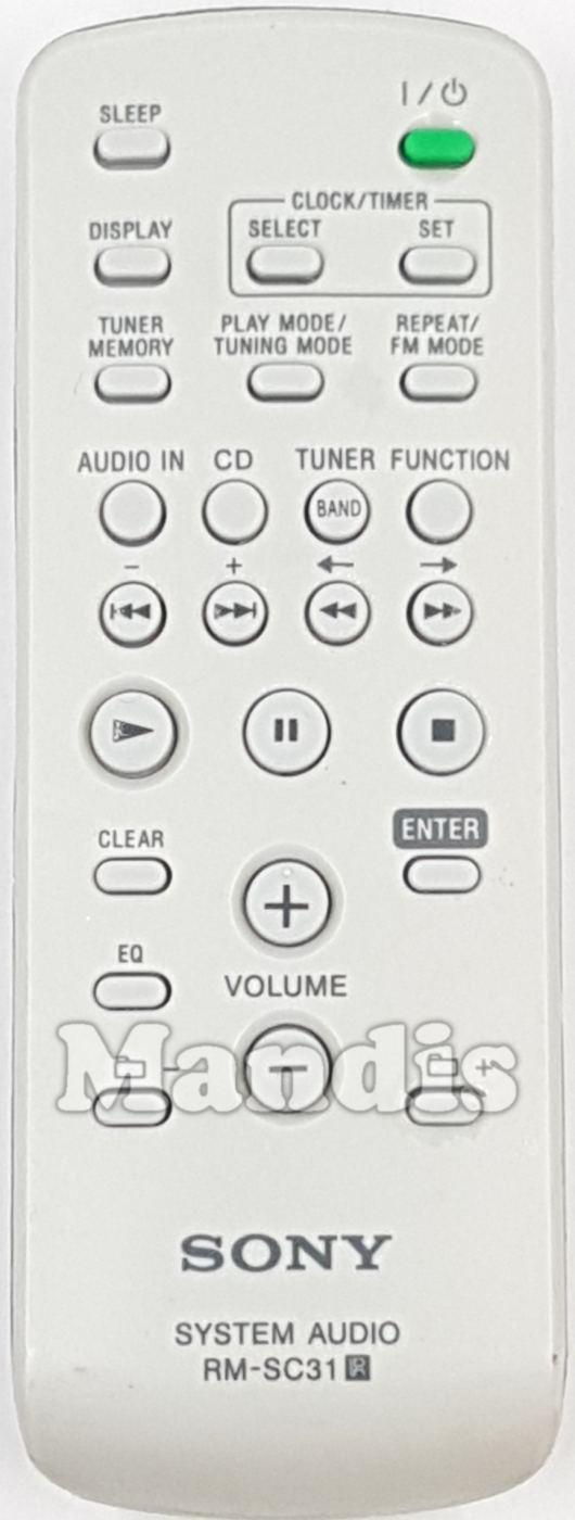 Télécommande d'origine RM-SC 31 (A1237274A) pour chaîne hi-fi de la marque Sony. Il s'agit d'un modèle de télécommande d'origine.