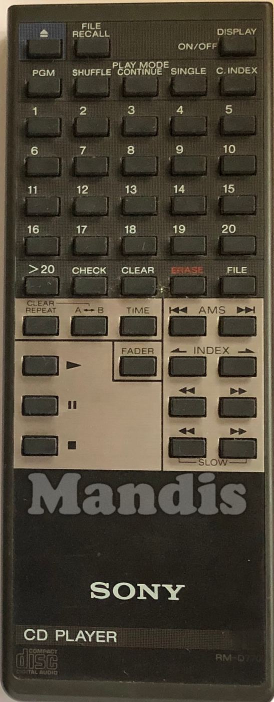 Télécommande d'origine RM-D770 de la marque Sony. Il s'agit d'un modèle de télécommande d'origine.