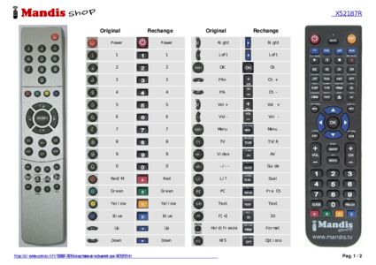 Un document est inclus pour vous aider à utiliser facilement la nouvelle télécommande, en indiquant la correspondance des boutons.