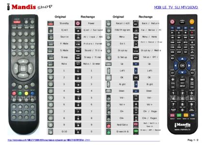Un document est inclus pour vous aider à utiliser facilement la nouvelle télécommande, en indiquant la correspondance des boutons.