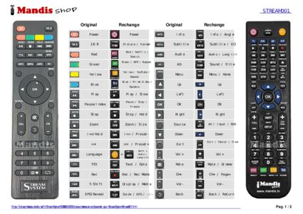 Cette télécommande remplace entièrement votre Stream001 et offre toutes les fonctions de l'originale.