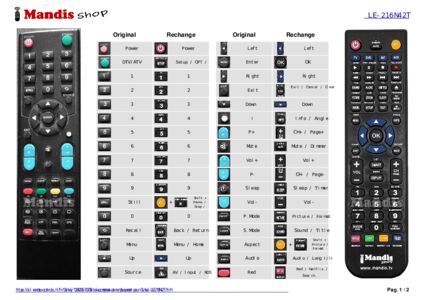 Un document est inclus pour vous aider à utiliser facilement la nouvelle télécommande, en indiquant la correspondance des boutons.