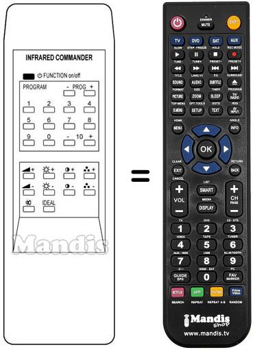 Télécommande qui remplace celle d'origine car elle possède les mêmes fonctions.
