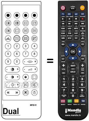 Télécommande qui remplace celle d'origine car elle possède les mêmes fonctions.