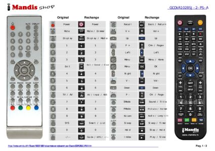 Accueil > Marques > Télécommandes TECHVISION > Télécommande pour TECHVISION GCOVA1028SJ-2-PS-A > Répartition interactive des touches TECHVISION GCOVA1028SJ-2-PS-A