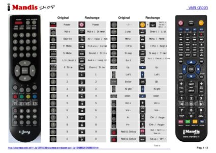 Un document est inclus pour vous aider à utiliser facilement la nouvelle télécommande, en indiquant la correspondance des boutons.