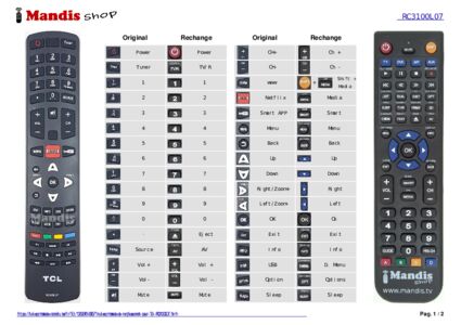 Accueil > Marques > Télécommandes Tcl > Télécommande pour TCL RC3100L07