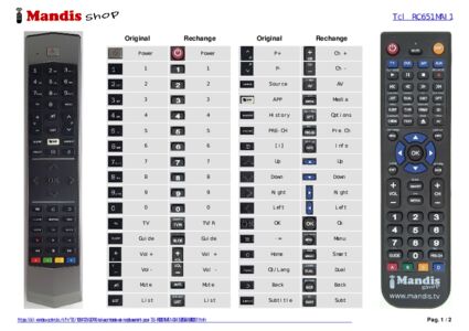 Question sur Tcl RC651MAI1 (06-IRZNSB-URC651) remote control