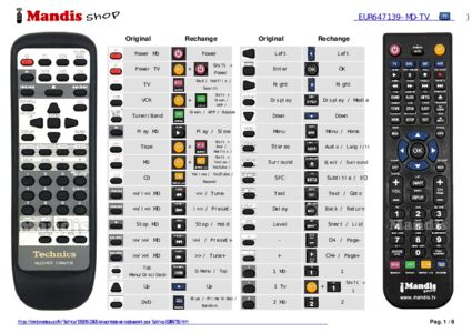Un document est inclus pour vous aider à utiliser facilement la nouvelle télécommande, en indiquant la correspondance des boutons.