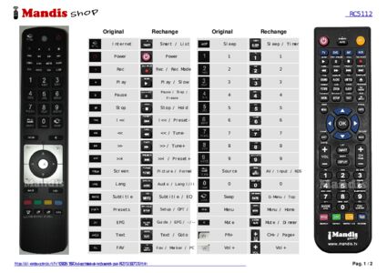 Un document est inclus pour vous aider à utiliser facilement la nouvelle télécommande, en indiquant la correspondance des boutons.