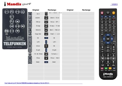 Cette télécommande remplace entièrement votre 10201 et offre toutes les fonctions de l'originale.