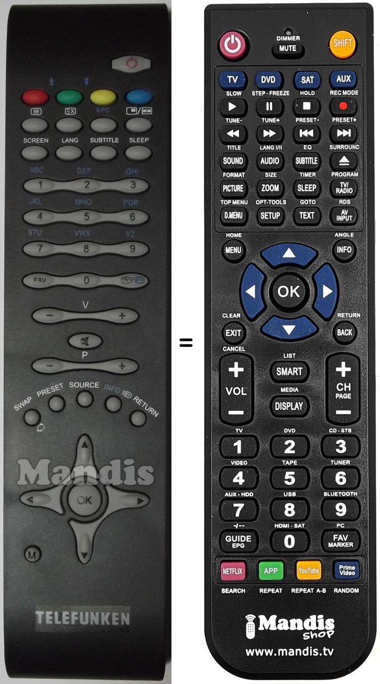 Télécommande qui remplace celle d'origine car elle possède les mêmes fonctions.