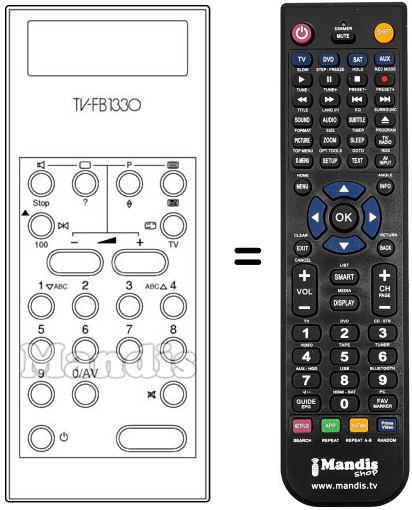 Télécommande qui remplace celle d'origine car elle possède les mêmes fonctions.