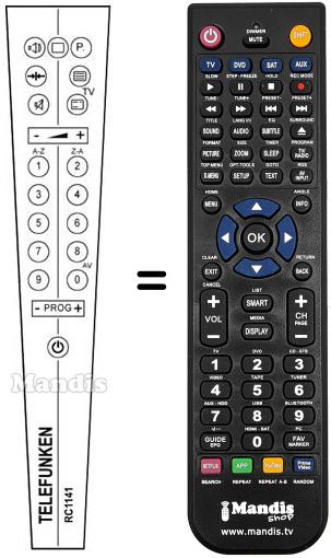 Télécommande qui remplace celle d'origine car elle possède les mêmes fonctions.