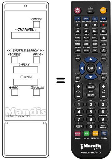 Télécommande qui remplace celle d'origine car elle possède les mêmes fonctions.