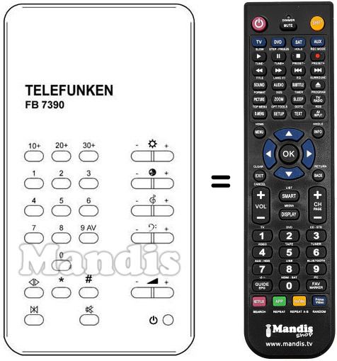 Télécommande qui remplace celle d'origine car elle possède les mêmes fonctions.