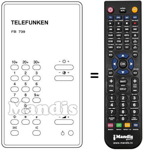 Télécommande qui remplace celle d'origine car elle possède les mêmes fonctions.