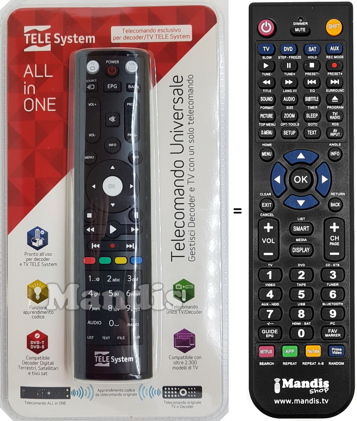 Télécommande qui remplace celle d'origine car elle possède les mêmes fonctions.