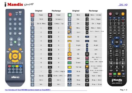 Cette télécommande remplace entièrement votre ZAS HD et offre toutes les fonctions de l'originale.
