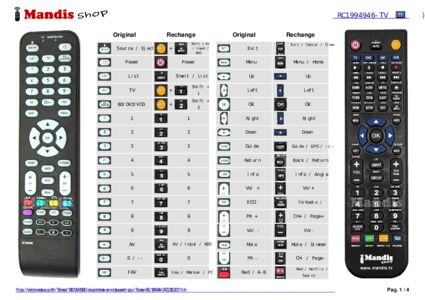 Un document est inclus pour vous aider à utiliser facilement la nouvelle télécommande, en indiquant la correspondance des boutons.