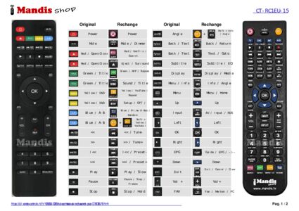Un document est inclus pour vous aider à utiliser facilement la nouvelle télécommande, en indiquant la correspondance des boutons.