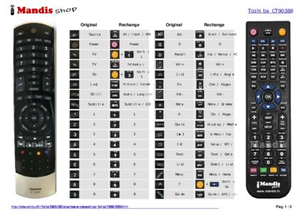 Un document est inclus pour vous aider à utiliser facilement la nouvelle télécommande, en indiquant la correspondance des boutons.