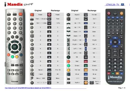 Un document est inclus pour vous aider à utiliser facilement la nouvelle télécommande, en indiquant la correspondance des boutons.