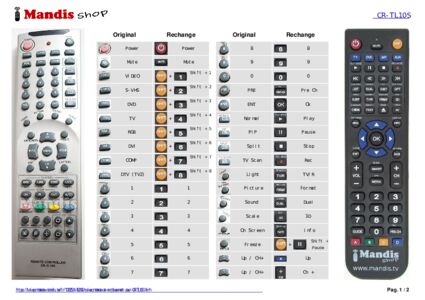Un document est inclus pour vous aider à utiliser facilement la nouvelle télécommande, en indiquant la correspondance des boutons.