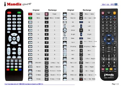 Un document est inclus pour vous aider à utiliser facilement la nouvelle télécommande, en indiquant la correspondance des boutons.