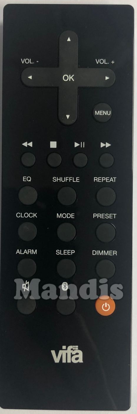 Télécommande d'origine VIFA001 pour chaîne hi-fi de la marque VIFA. Il s'agit d'un modèle de télécommande d'origine.