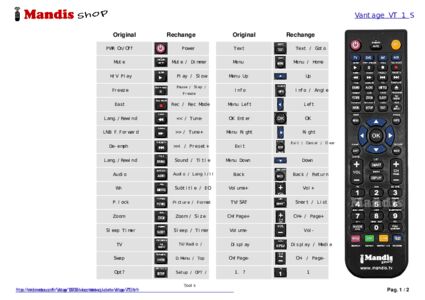 Un document est inclus pour vous aider à utiliser facilement la nouvelle télécommande, en indiquant la correspondance des boutons.