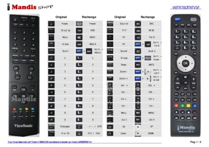 Un document est inclus pour vous aider à utiliser facilement la nouvelle télécommande, en indiquant la correspondance des boutons.