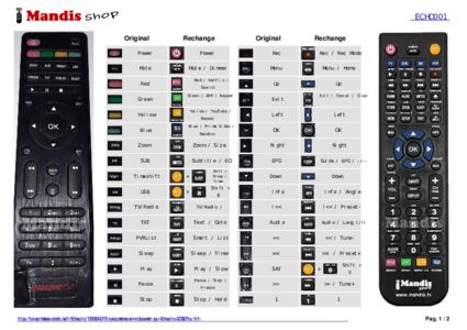 Un document est inclus pour vous aider à utiliser facilement la nouvelle télécommande, en indiquant la correspondance des boutons.