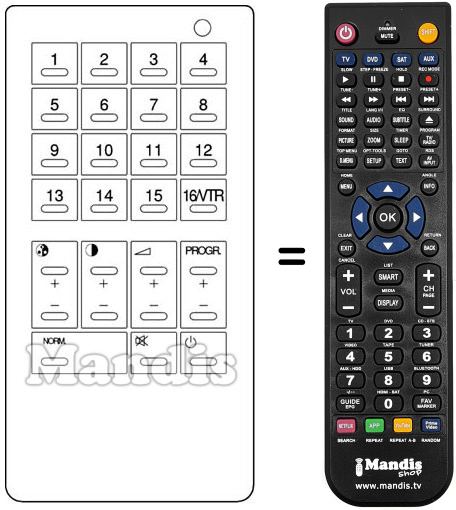 Télécommande qui remplace celle d'origine car elle possède les mêmes fonctions.