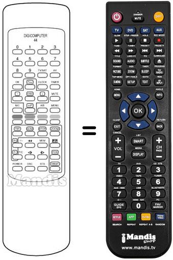Télécommande qui remplace celle d'origine car elle possède les mêmes fonctions.