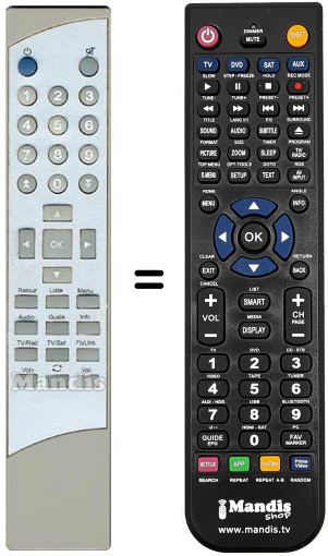 Télécommande qui remplace celle d'origine car elle possède les mêmes fonctions.