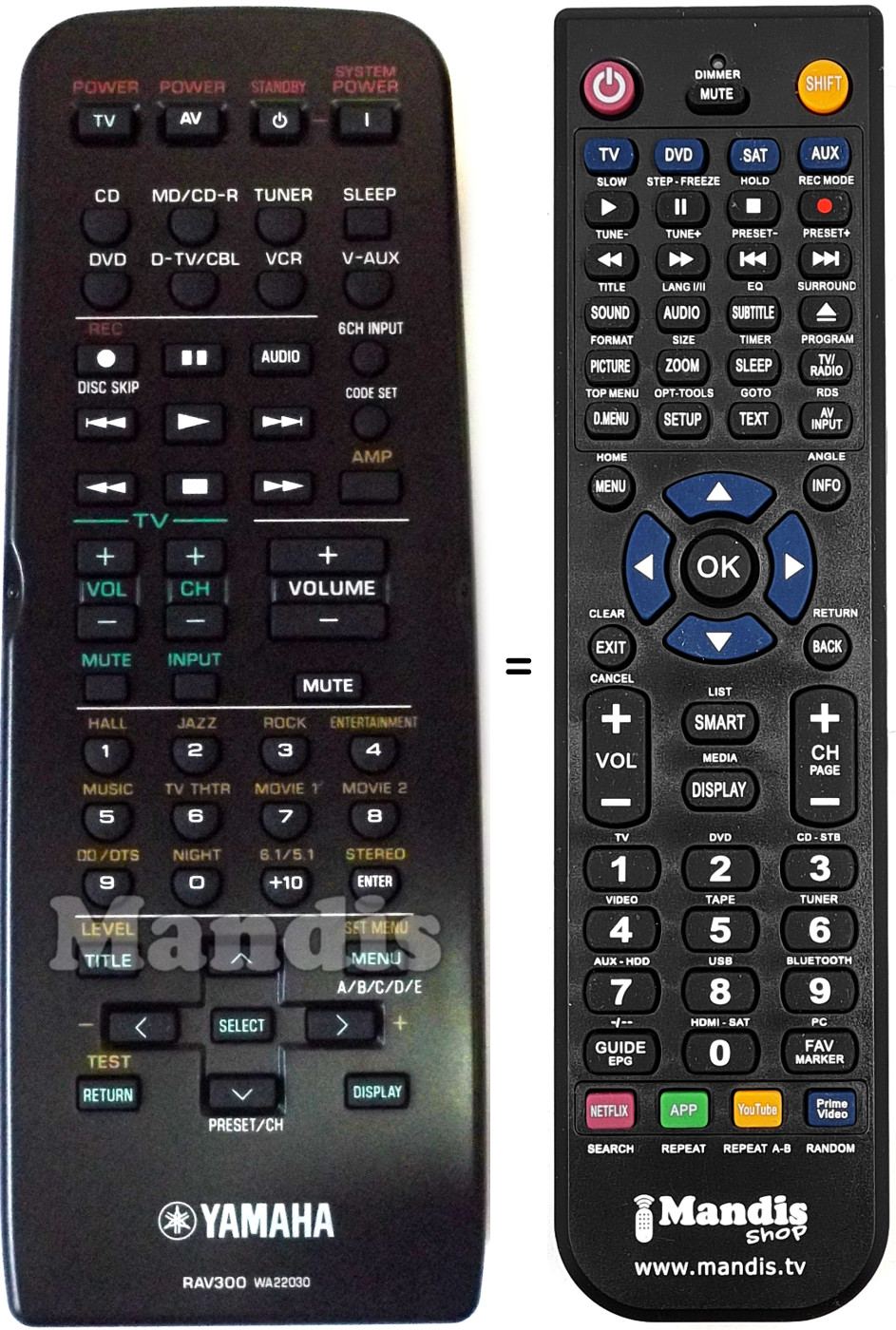 Télécommande qui remplace celle d'origine car elle possède les mêmes fonctions.