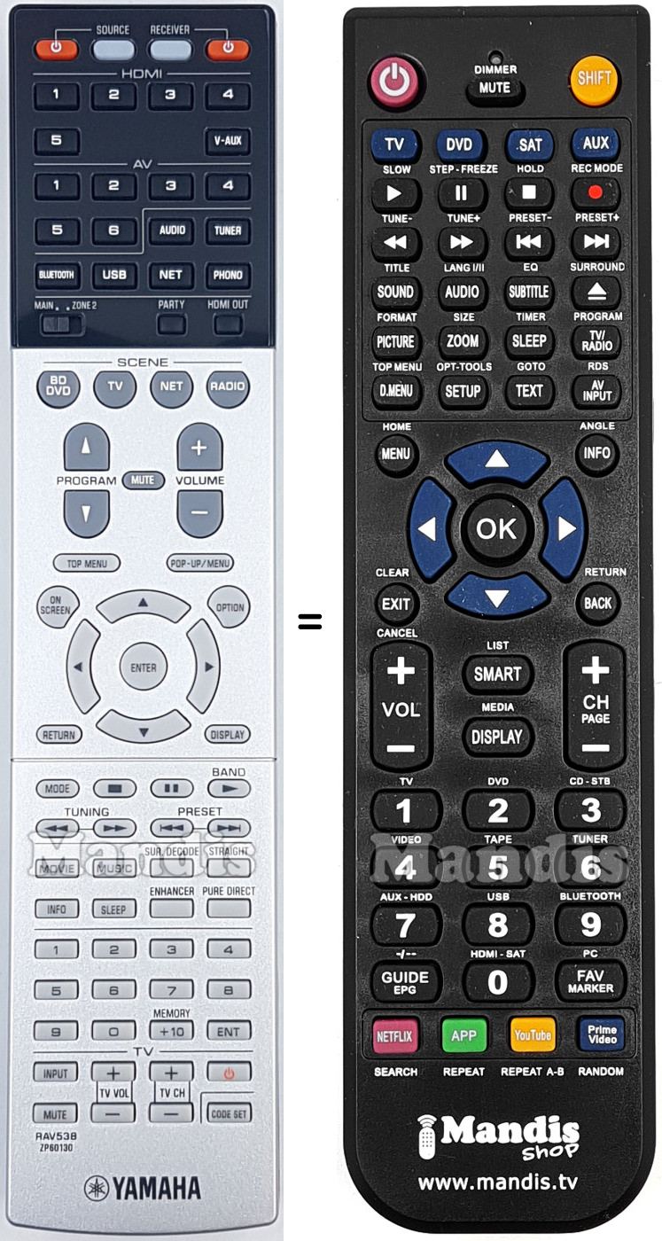 Cette télécommande remplace entièrement votre RAV538 (ZP601300) et offre toutes les fonctions de l'originale.