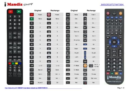 Un document est inclus pour vous aider à utiliser facilement la nouvelle télécommande, en indiquant la correspondance des boutons.
