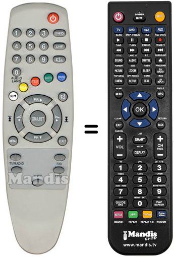 Télécommande qui remplace celle d'origine car elle possède les mêmes fonctions.
