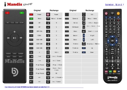 Un document est inclus pour vous aider à utiliser facilement la nouvelle télécommande, en indiquant la correspondance des boutons.