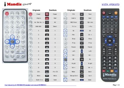Inizio > Marche > Telecomandi VIETA > Telecomando per VIETA VPD910TD > Distribuzione interattiva dei tasti VIETA VPD910TD