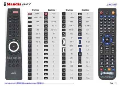 Di seguito, vi mostreremo la corrispondenza tra ciascun pulsante del telecomando originale e il pulsante che svolge la stessa funzione sul telecomando di sostituzione. In alcuni casi, potrebbe essere necessario premere il tasto SHIFT prima di premere un altro pulsante per eseguire determinate azioni. Queste funzioni aggiuntive sono spesso poco utilizzate e sono incluse per facilitare la comprensione del telecomando di sostituzione, o perché il telecomando originale ha più pulsanti rispetto al suo equivalente.