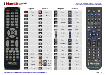 Inizio > Marche > Telecomandi AQPROX APPLIANCES > Telecomando per AQPROX APPLIANCES AQP001 > Distribuzione interattiva dei tasti AQPROX APPLIANCES AQP001