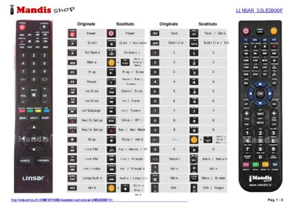Inizio > Marche > Telecomandi LINSAR > Telecomando per LINSAR 32LED900F > Distribuzione interattiva dei tasti LINSAR 32LED900F
