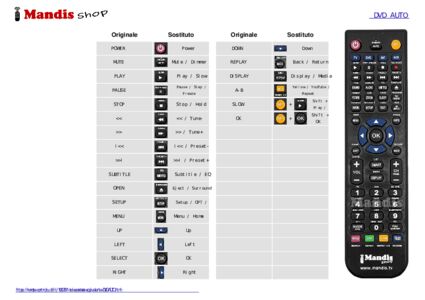 Di seguito, vi mostreremo la corrispondenza tra ciascun pulsante del telecomando originale e il pulsante che svolge la stessa funzione sul telecomando di sostituzione. In alcuni casi, potrebbe essere necessario premere il tasto SHIFT prima di premere un altro pulsante per eseguire determinate azioni. Queste funzioni aggiuntive sono spesso poco utilizzate e sono incluse per facilitare la comprensione del telecomando di sostituzione, o perché il telecomando originale ha più pulsanti rispetto al suo equivalente.