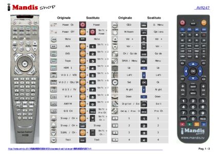 Di seguito, vi mostreremo la corrispondenza tra ciascun pulsante del telecomando originale e il pulsante che svolge la stessa funzione sul telecomando di sostituzione. In alcuni casi, potrebbe essere necessario premere il tasto SHIFT prima di premere un altro pulsante per eseguire determinate azioni. Queste funzioni aggiuntive sono spesso poco utilizzate e sono incluse per facilitare la comprensione del telecomando di sostituzione, o perché il telecomando originale ha più pulsanti rispetto al suo equivalente.