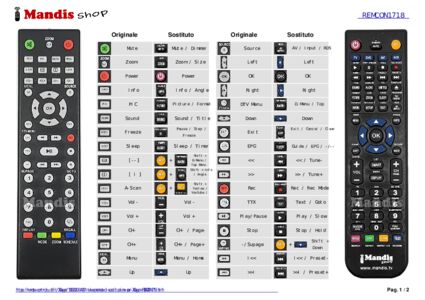 È incluso un documento per aiutarti a utilizzare facilmente il nuovo telecomando, indicando la corrispondenza dei pulsanti.